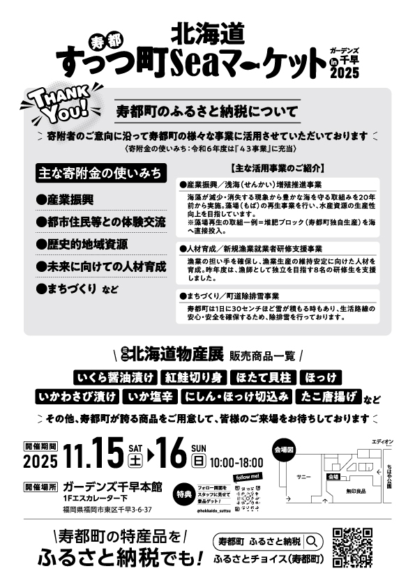 また、当日は寿都町のふるさと納税のご案内も行います。
