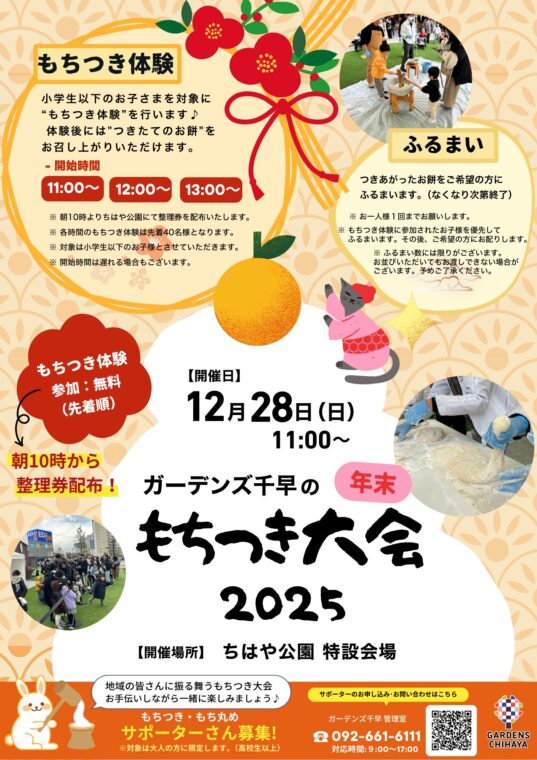 📣ガーデンズ千早の\年末もちつき大会/を開催します😄