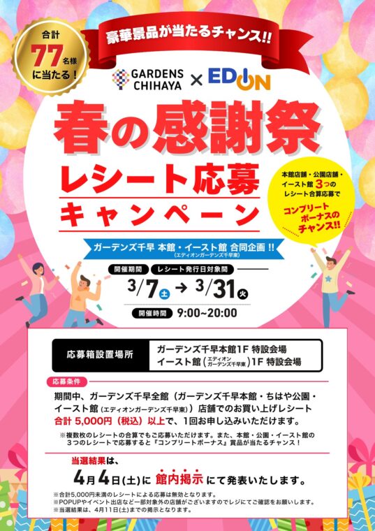 ガーデンズ千早全館(ガーデンズ千早本館・ちはや公園・エディオンガーデンズ千早東)エディオンガーデンズ東店 合同企画