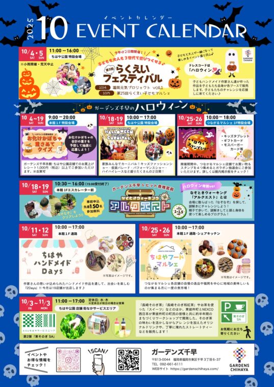 本日10/18(土)は雨天のため、中止いたします。なお、各イベントについてお知らせがありますので、ご確認をお願いします。…