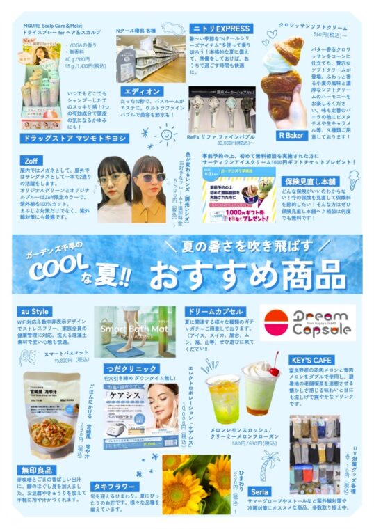 お店レコメンド!夏の暑さを吹き飛ばす商品をご紹介! 2025.07.11 NEWS|本館|ちはや公園 毎日続く暑さに、熱中症アラートも発令中していますね…皆さま、いかがお過ごしでしょうか? 本格的な夏の到来にあわせて、ガー… More→