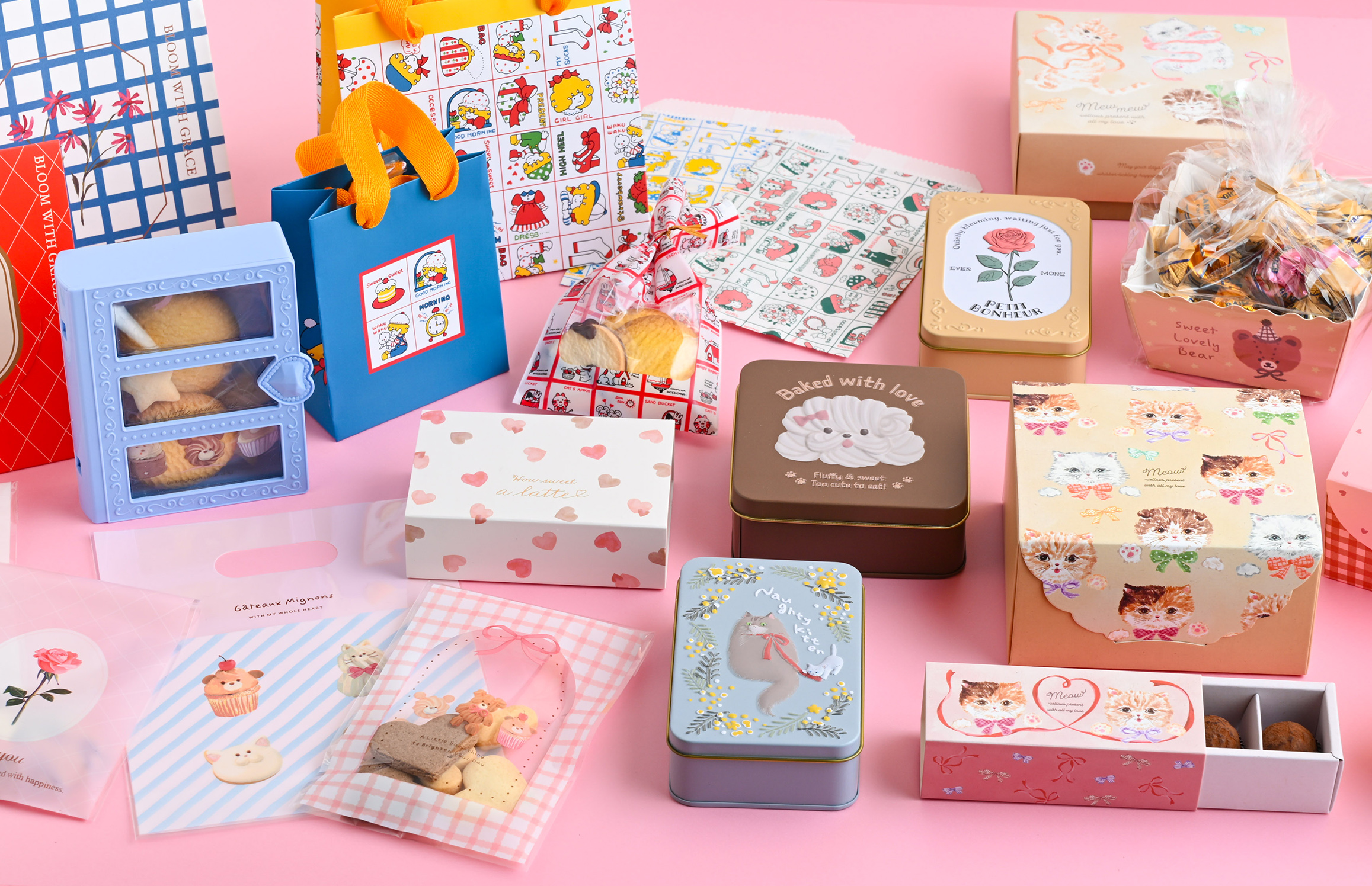 ねことリボンの柄がガーリー♪ラッピングしてプレゼントしよう 。